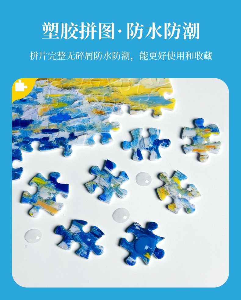 拼圖名稱:四合一塑料平面油畫拼圖 材質:塑料 拼圖尺寸:317*260mm 拼圖片數:1000片 加工方式:廠規、來圖定制 單盒包裝尺寸:185*110*48mm 四合一系列套裝:205*185*110mm